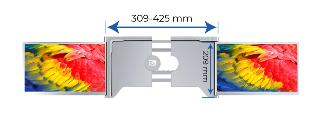 The back panel of the Trimonitör Dual 14″ is suitable for use between a minimum of 309mm and a maximum of 425mm.