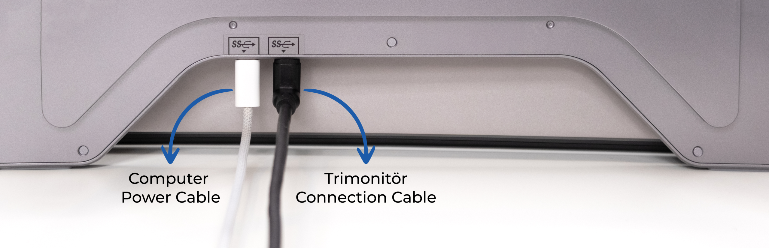 If your computer has USB-A ports, plug one end of the dual USB-A cable shown in the picture into your computer for power and the other end for video transmission. Then you can connect the Trimonitör with the USB-C end.